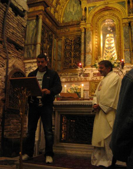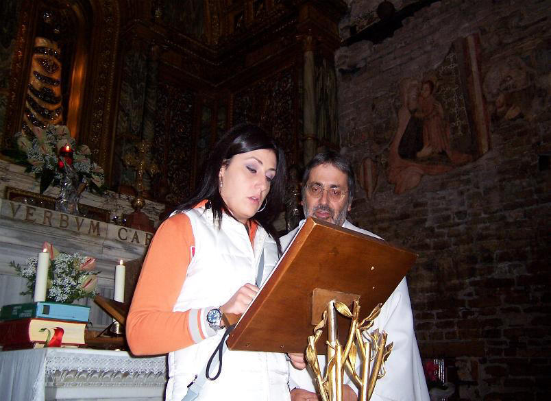 a volte rotta dalla commozione, le letture al Vangelo sono fatte da noi