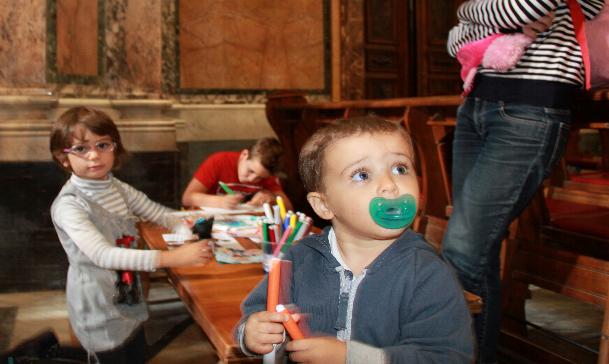 della santa Comunione; vedere i bambini sereni dipingere sui banchi